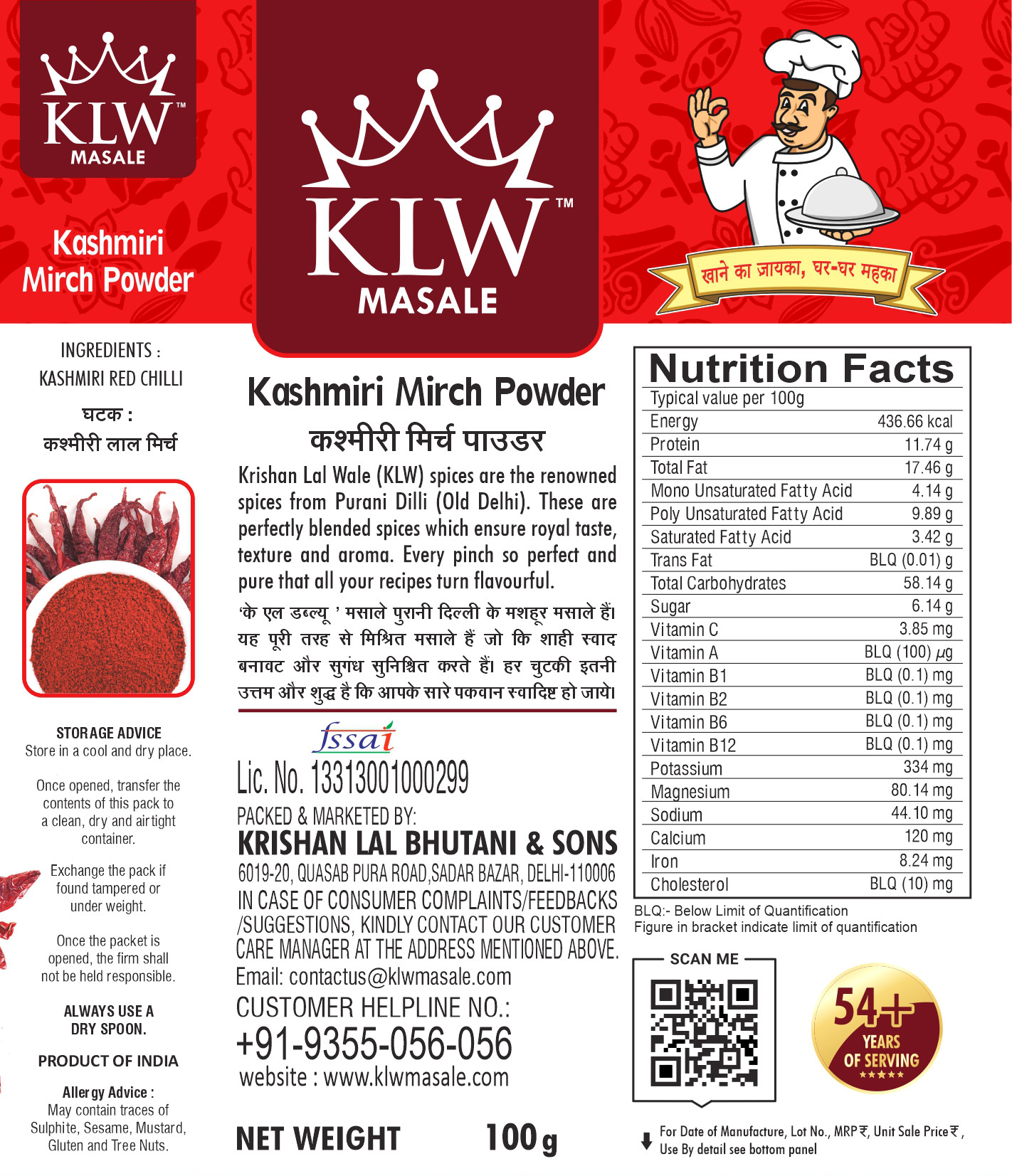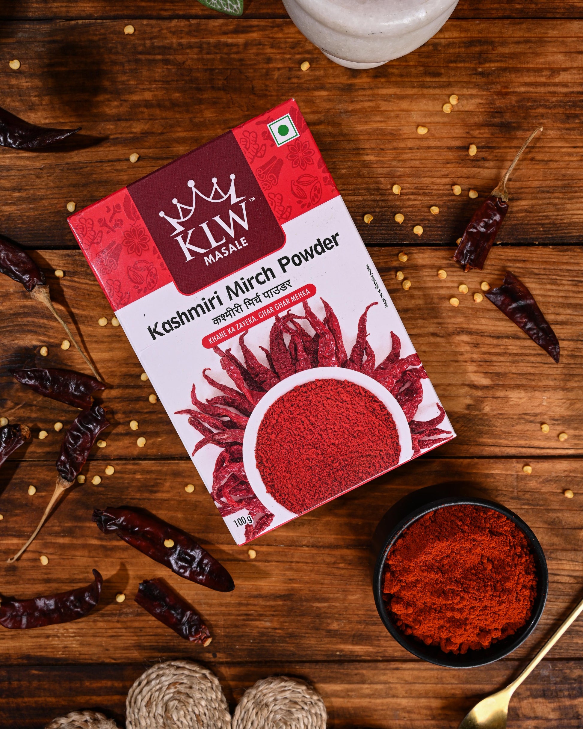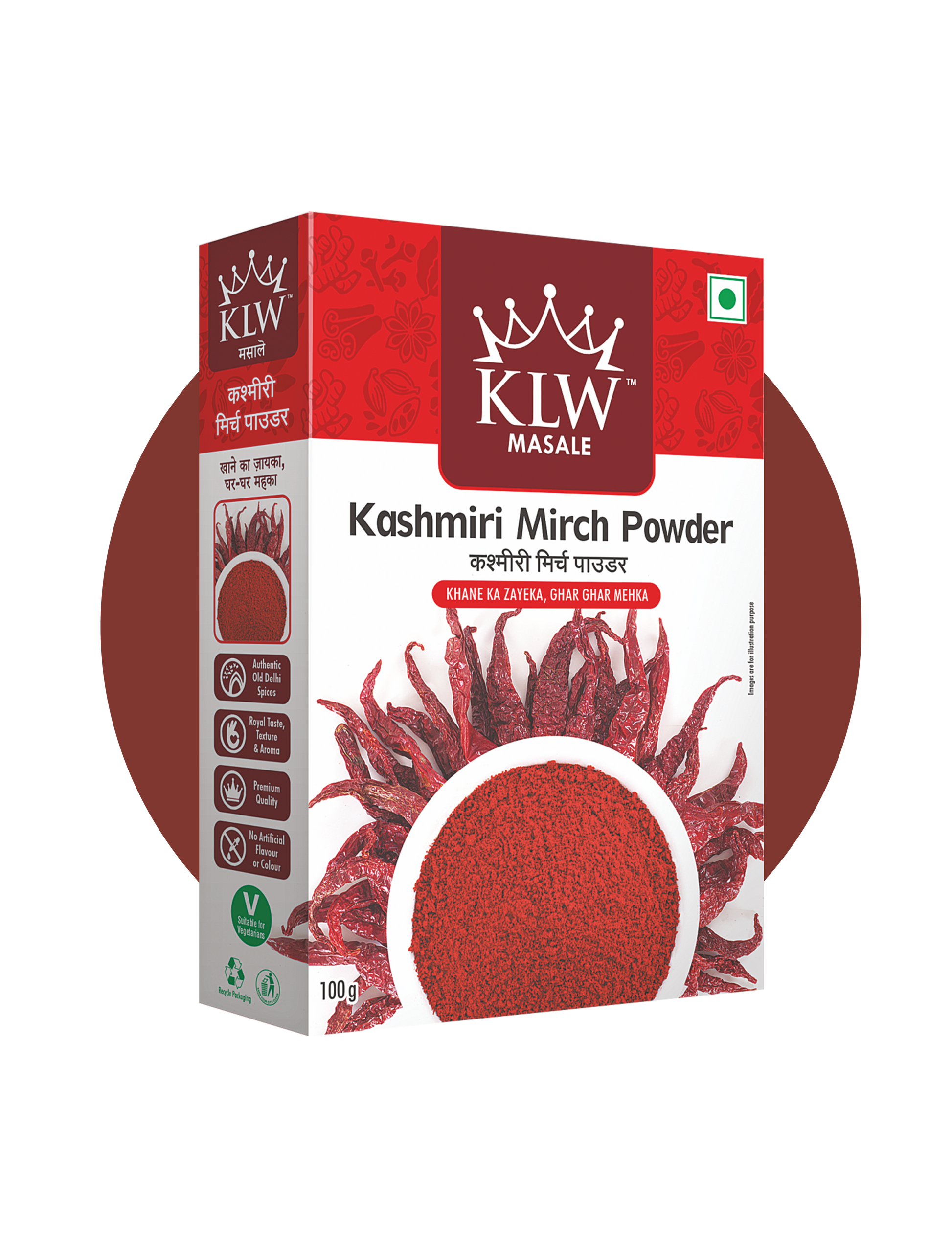 Kashmiri chilis grounded without stem in order to achieve a high-quality powder. A good source of antioxidants and vitamins, our Kashmiri Mirch adds a flavorful kick to your meals along with a rich colour and texture. Indulge in the delightful benefits of our 100g pack.