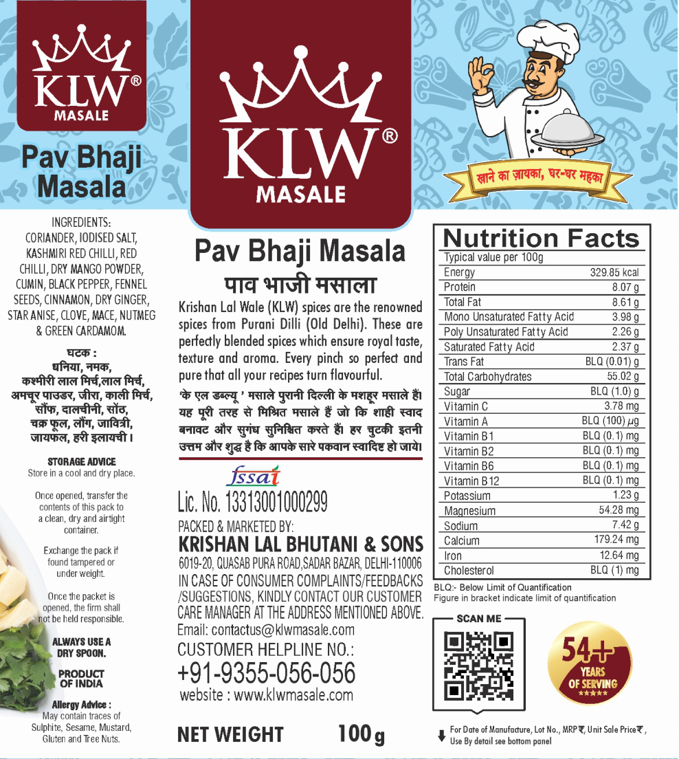 Expertly crafted for a truly authentic taste, KLW Pav Bhaji Masala brings the mouth-watering flavors of India right to your kitchen. This aromatic and flavorful spice blend enhances any mixed vegetable dish, making it perfect for creating the classic Pav Bhaji. Transform your meals with KLW Pav Bhaji Masala.