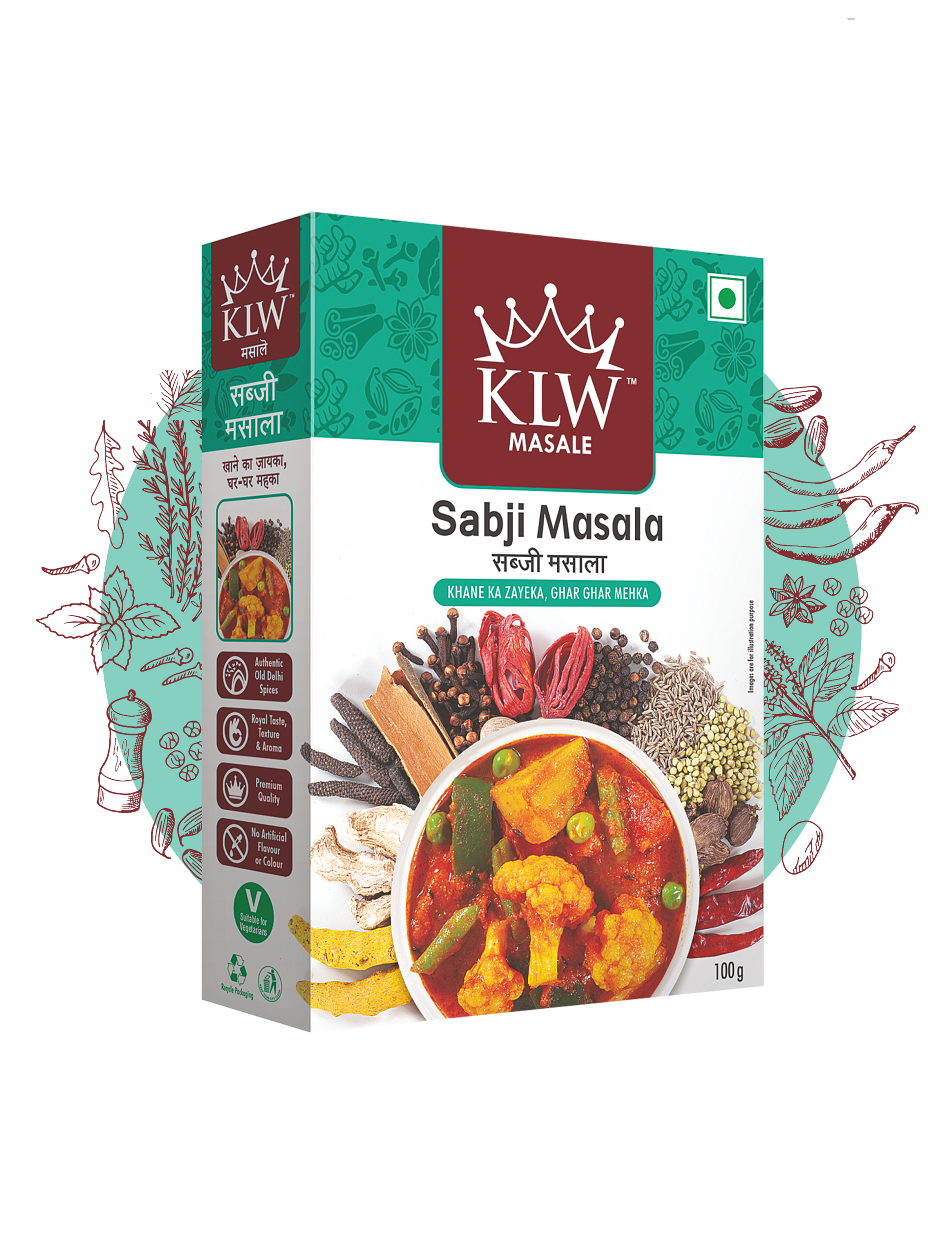 KLW Sabji Masala is the perfect blend for your vegetable sabji. Made with premium quality ingredients. NO onion, NO garlic, NO additives, NO preservatives, NO chemicals. JUST CLEAN INGREDIENTS.