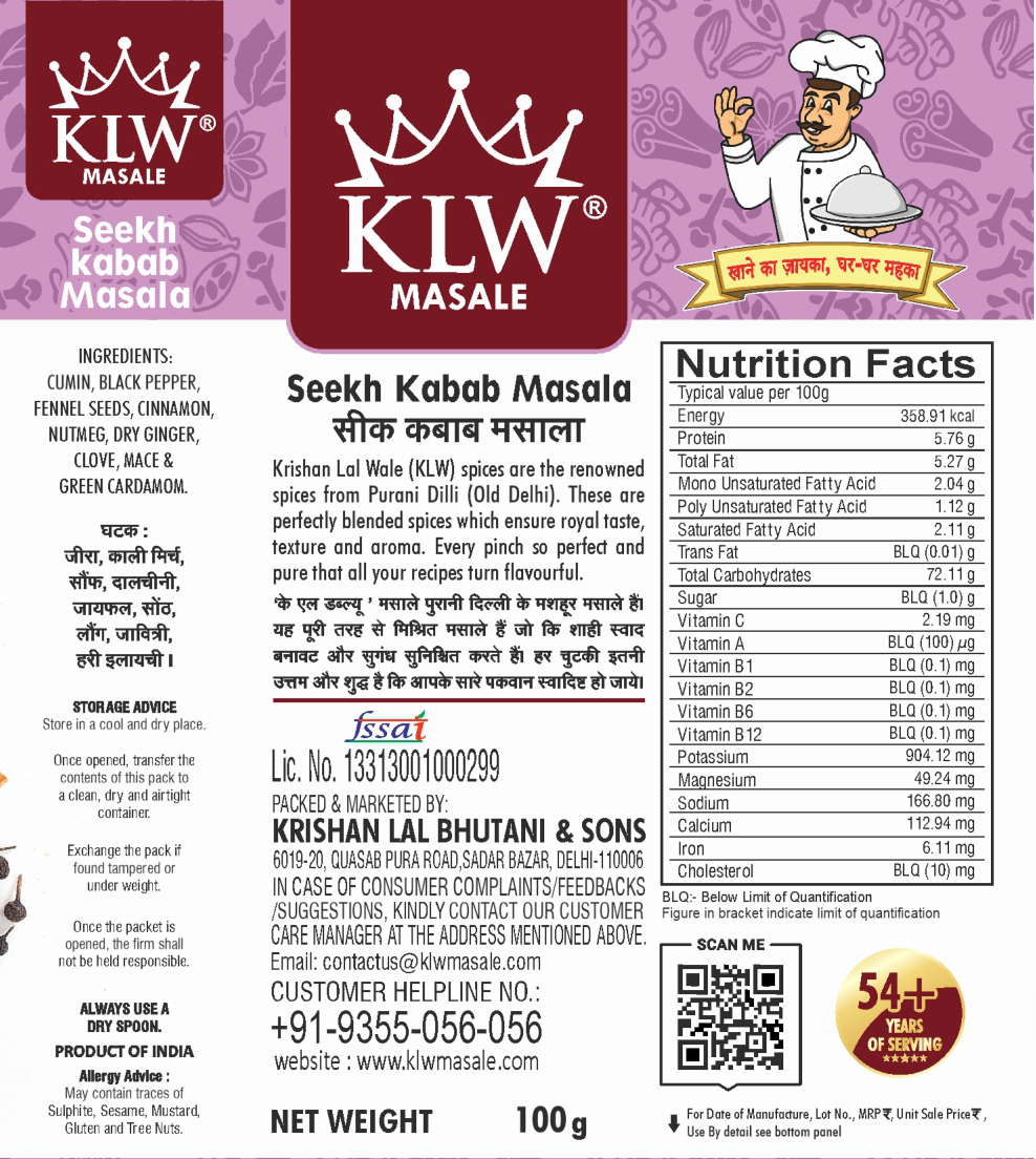 KLW Seekh Kebab Masala 100g