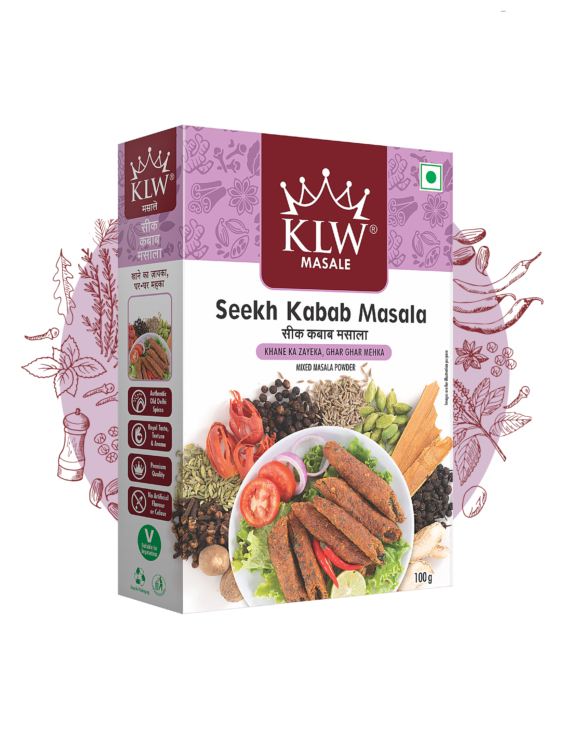 Infuse your kebabs with mouthwatering flavor using KLW Seekh Kebab Masala. This versatile blend adds a delicious twist to both non-veg and veg options. Simply season and grill for a truly finger-licking experience. Enhance your cooking repertoire with this tasteful addition.